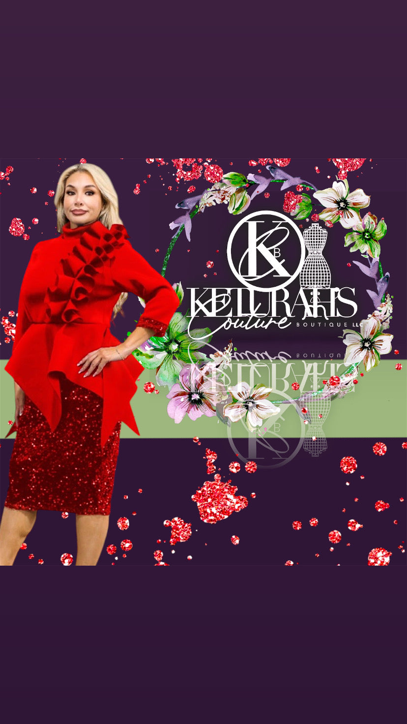 Elegant dress featuring a structured ruffle peplum top with long sleeves and a sparkling sequin pencil skirt, creating a sophisticated and glamorous look.